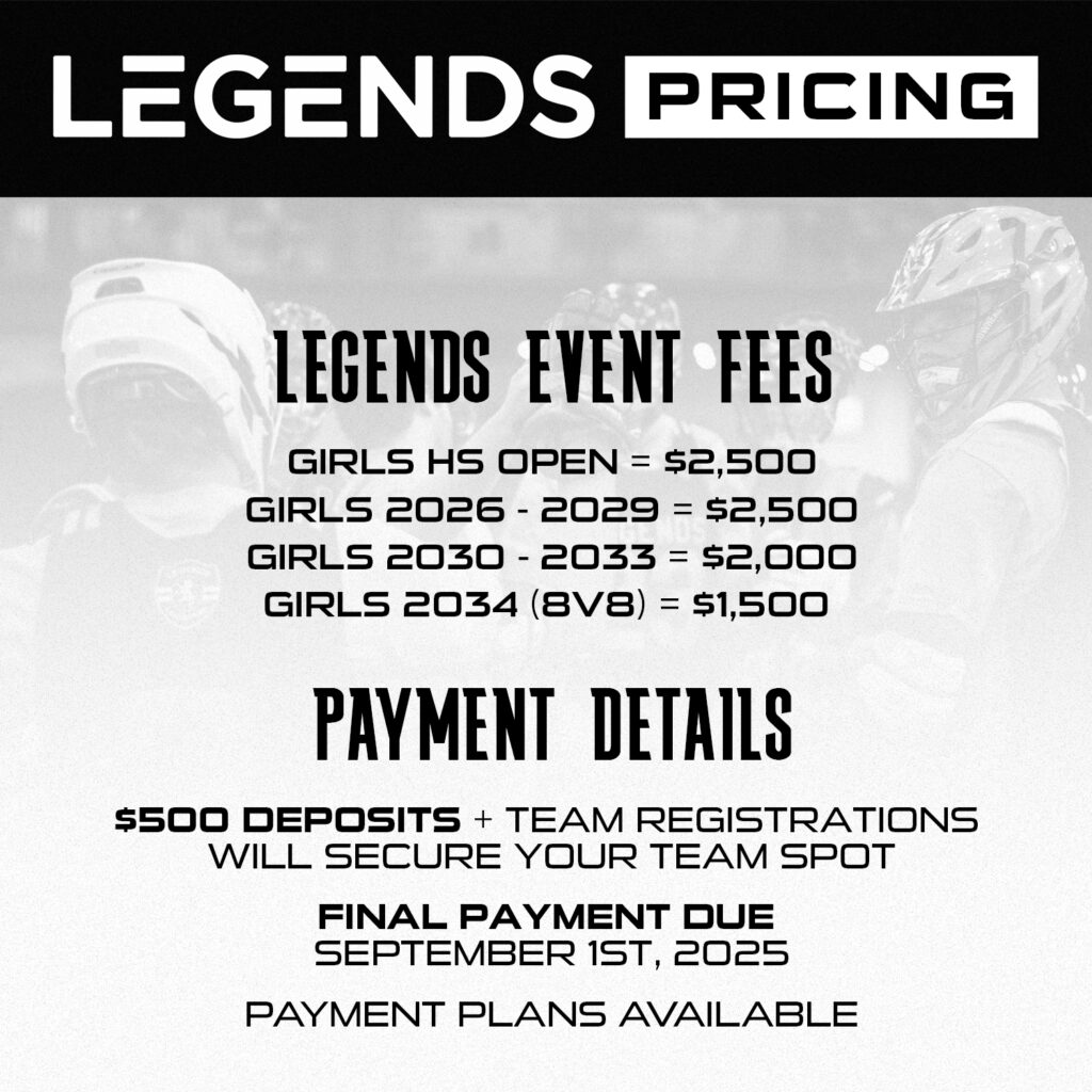 - For registration questions or assistance contact: Events@LegendsLax.com