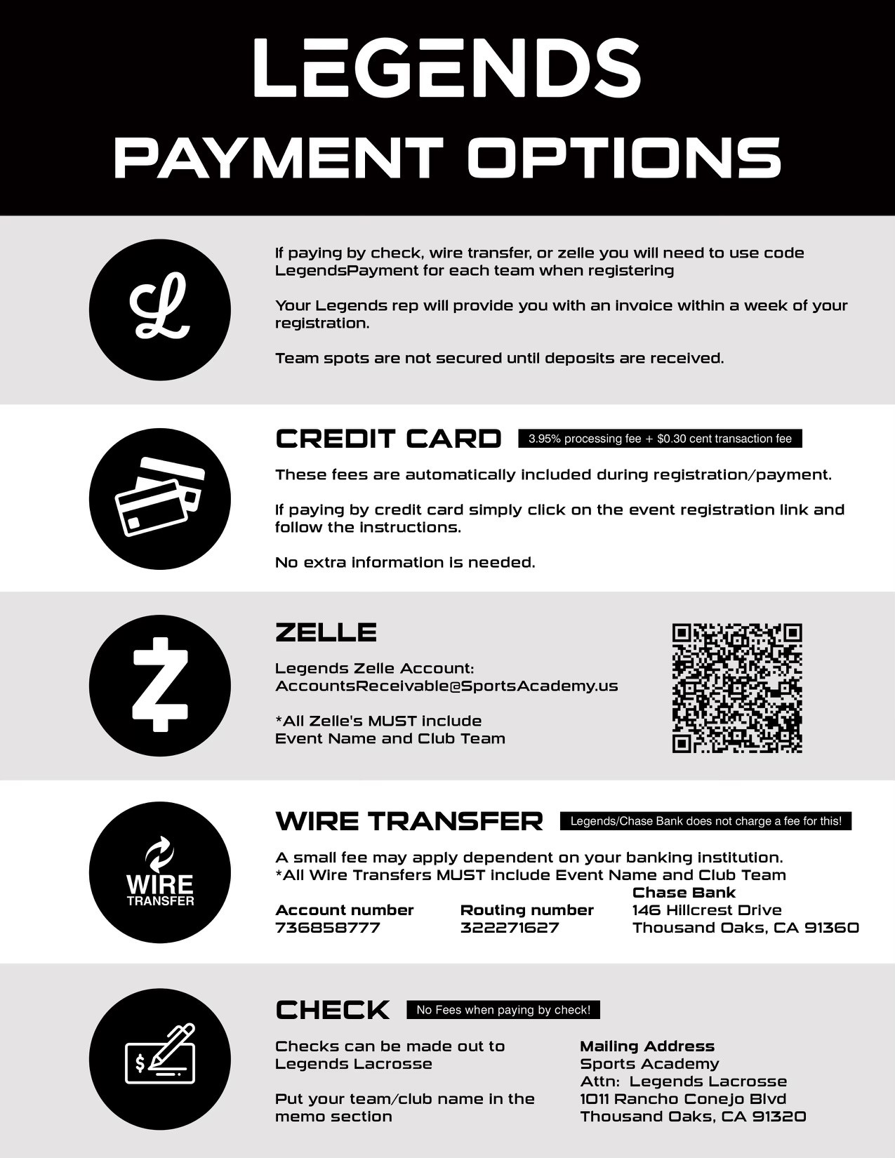 Any schedule requests must be submitted in writing to events@dev.legendslax.com at least 30 days prior to the start of the tournament. Schedule requests are not guaranteed but Legends will do our best to accommodate if received within the timeframe.