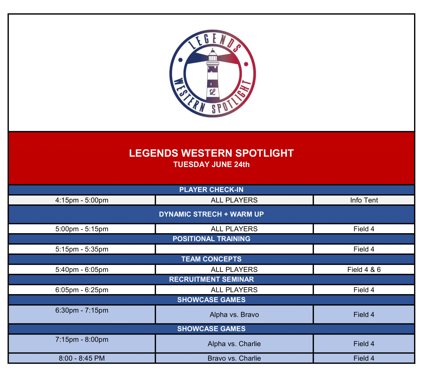 - Legends will host the Legends Western Spotlight on Tuesday, June 23rd