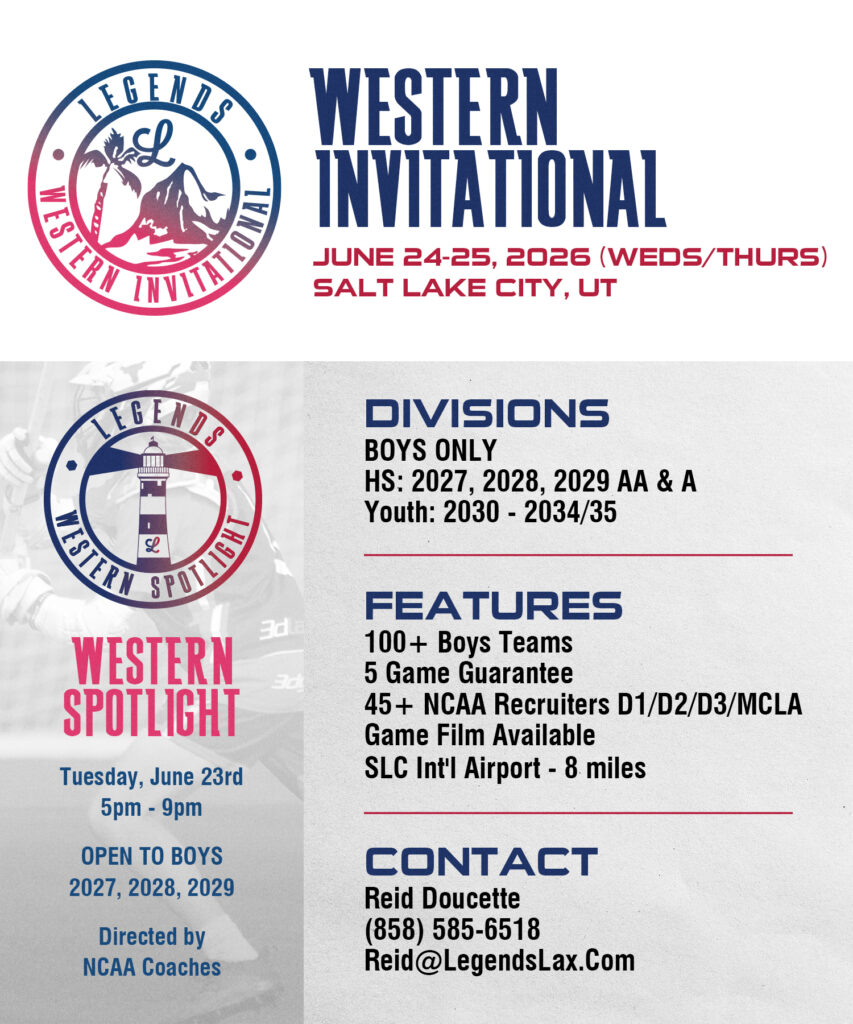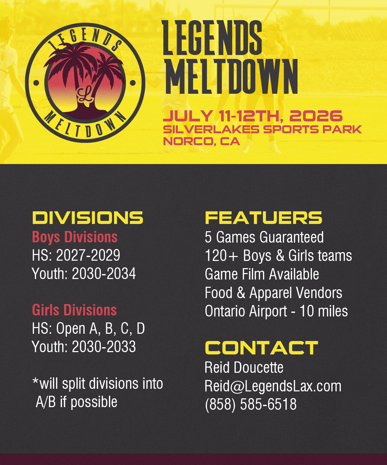 - For registration questions or assistance contact: Events@LegendsLax.com
